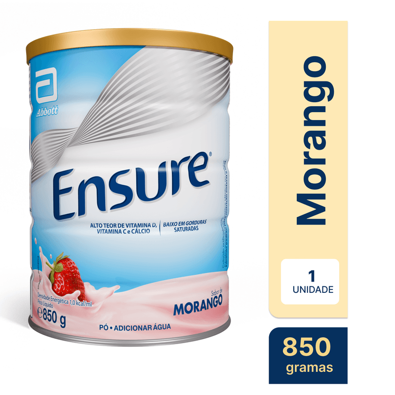 O Ensure Pó Morango 850g é um suplemento alimentar completo e balanceado, desenvolvido para complementar a dieta de adultos e idosos. Sua fórmula fornece proteínas de alta qualidade, carboidratos, gorduras saudáveis, vitaminas e minerais que ajudam a manter energia, preservar a massa muscular e fortalecer o sistema imunológico. O sabor agradável de morango facilita o consumo diário.