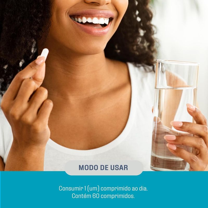Ingerir 1 comprimido ao dia com água, preferencialmente junto a uma refeição. Utilize em horário regular. Em uso concomitante de outros suplementos ou medicamentos, consulte profissional para ajustar doses e horários.