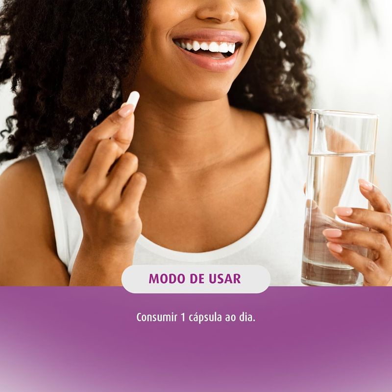 Ingerir 1 cápsula ao dia com água, preferencialmente junto a uma refeição, ou conforme orientação de profissional de saúde. Utilize em horário regular para melhor aderência.