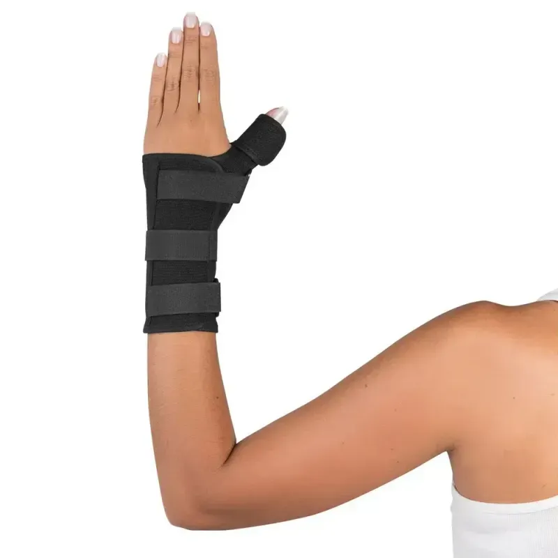 Térmica e compressiva. Colher anatômica em plástico rígido para melhor posicionamento do punho.