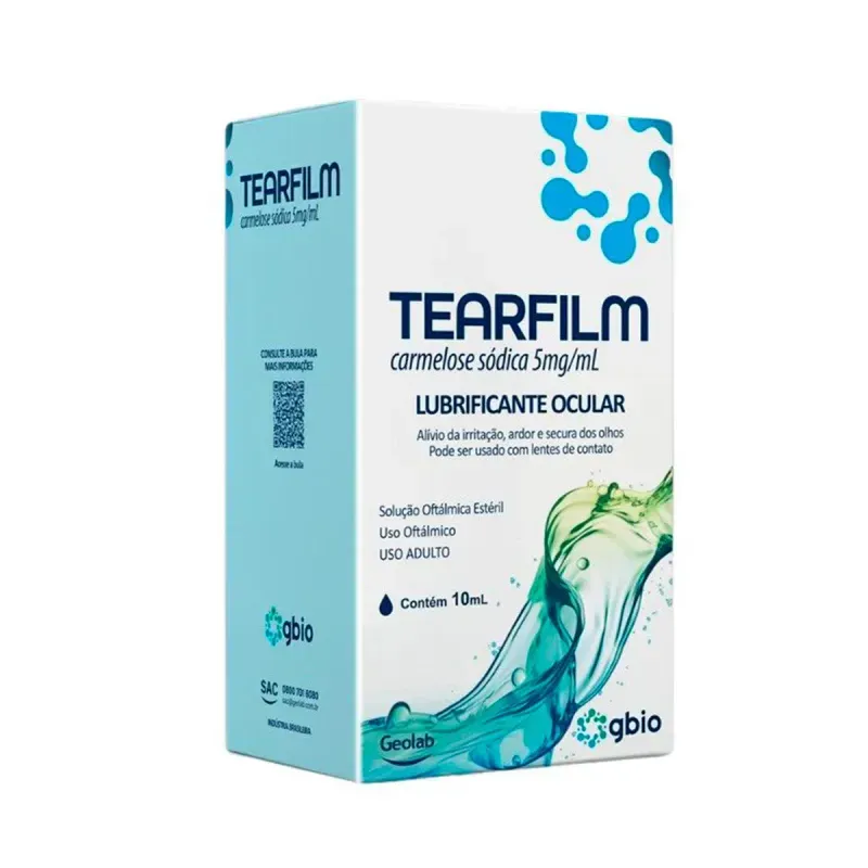 Tearfilm é uma solução que apresenta composição muito semelhante à composição das lágrimas naturais. O princípio ativo (carmelose sódica) se combina com as lágrimas do paciente, proporcionando melhora imediata da irritação, ardor e secura dos olhos.Modo de uso