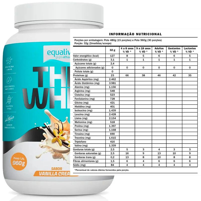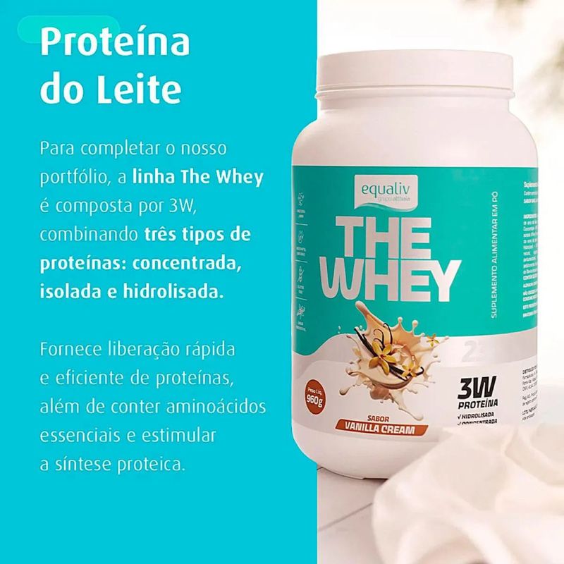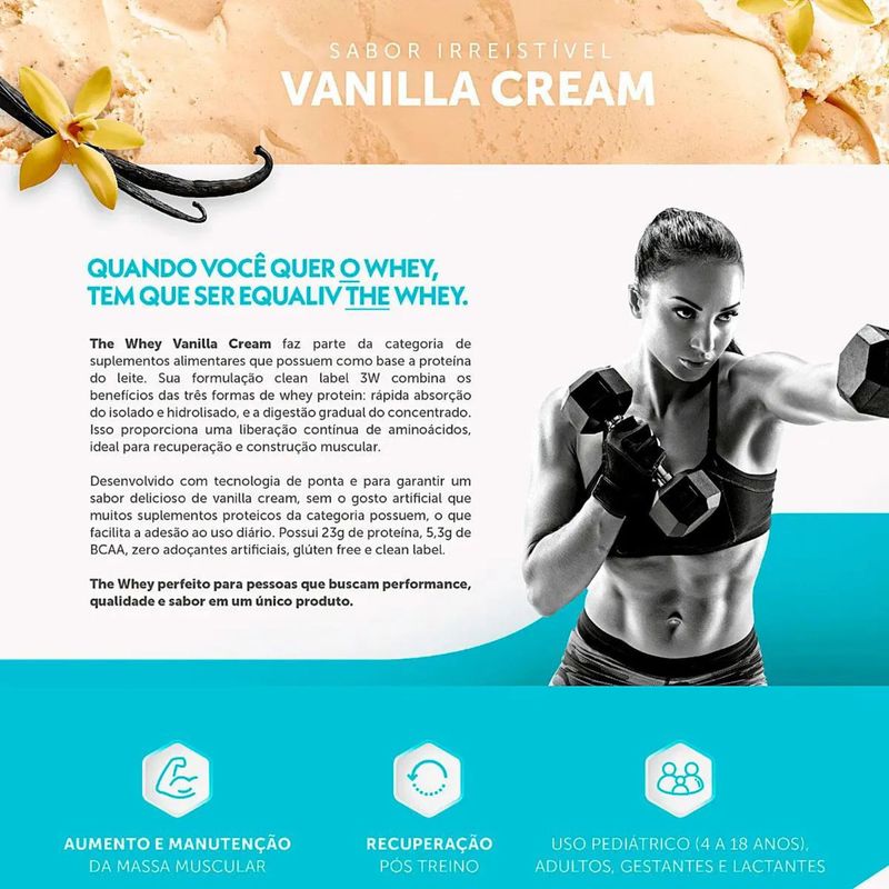 The Whey Equaliv Sabor Vanilla 960g é um suplemento proteico à base de proteína do soro do leite (whey), indicado para complementar a ingestão diária de proteínas em rotinas de treino e/ou dietas com foco em massa magra, desempenho e recuperação. A proteína é essencial para manutenção e construção muscular, além de contribuir para saciedade, o que pode ajudar em diferentes objetivos. Com sabor Vanilla (baunilha), é uma opção versátil e fácil de combinar com frutas, aveia e receitas, ajudando a manter a regularidade do consumo no pós-treino ou em lanches ao longo do dia.