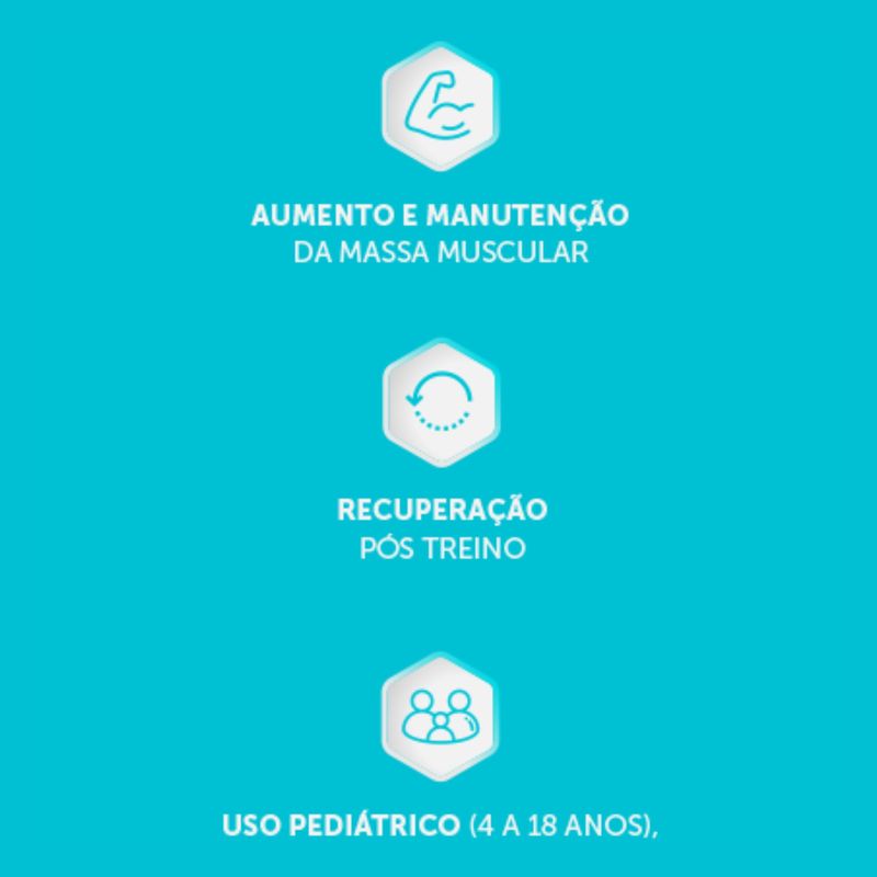 - Apoia recuperação muscular e manutenção de massa magra quando associado a treino