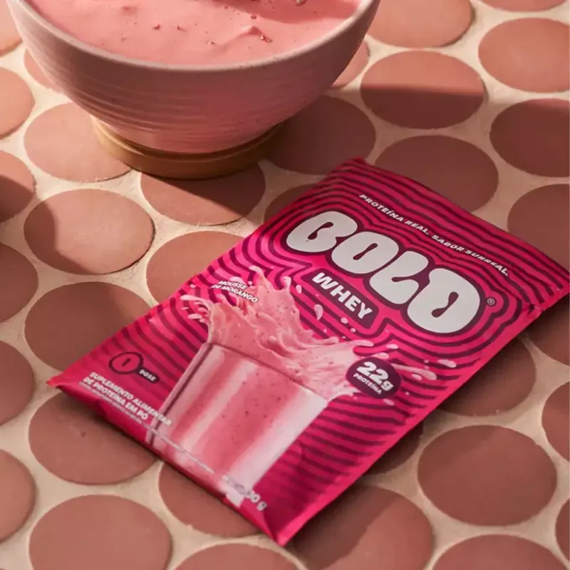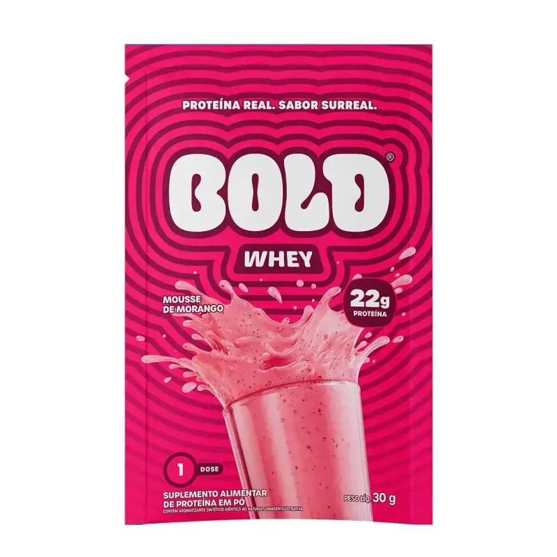 Proteína do soro do leite e demais ingredientes conforme formulação do fabricante (podendo incluir aromatizantes, espessantes, emulsificantes e edulcorantes). A composição completa, tabela nutricional e alergênicos devem ser conferidos no rótulo do Whey Protein Bold Mousse de Morango 30g.